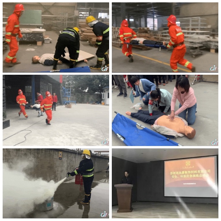 1.模拟的事故场景是尚尚嘉公司木工车间内由于临时用电线路突然产生火花,引燃周边易燃品并冒起浓烟,员工发现后立即把起火地点、初步判定起火原因报告企业负责人。