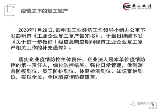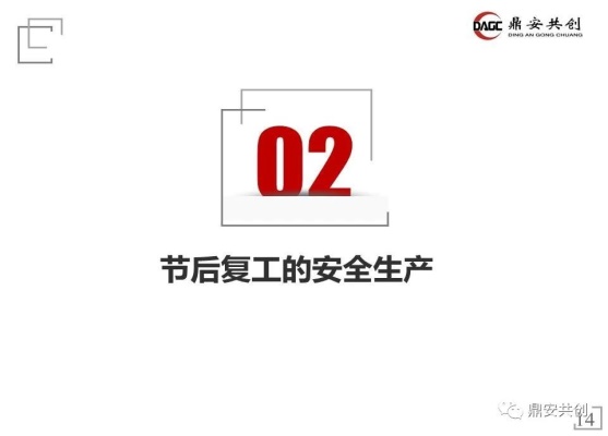 目前,新型冠状病毒感染的肺炎疫情形式依旧严峻,特别是节后工业企业陆续复工复产,容易形成人员集聚。疫情防控形势紧迫,责任重大。企业必须做好节后复工复产疫情防控工作,以下复工培训课件供大家参考。